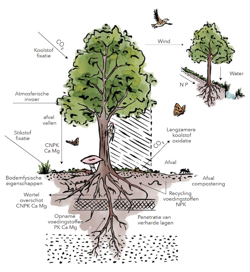 Een goed groeiende boom heeft dus langjarig een grote impact op de bodem. Dus door een goed groeiende boom te realiseren draag je bij aan duurzaam beheer van de landbouwbodems.