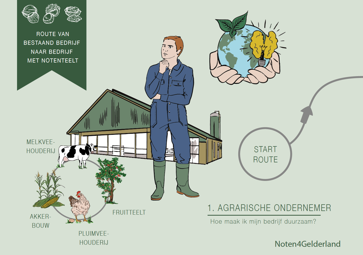 In het kader van de POP 3 regeling Innovatieve concepten van de provincie Gelderland zijn binnen het project Noten4Gelderland diverse concepten ontwikkeld. De brochure hieronder is een handreiking om u als ondernemer te helpen bij uw keuzes. In deze brochure worden diverse routes aangegeven om notenteelt te integreren in uw bedrijfsvoering.
